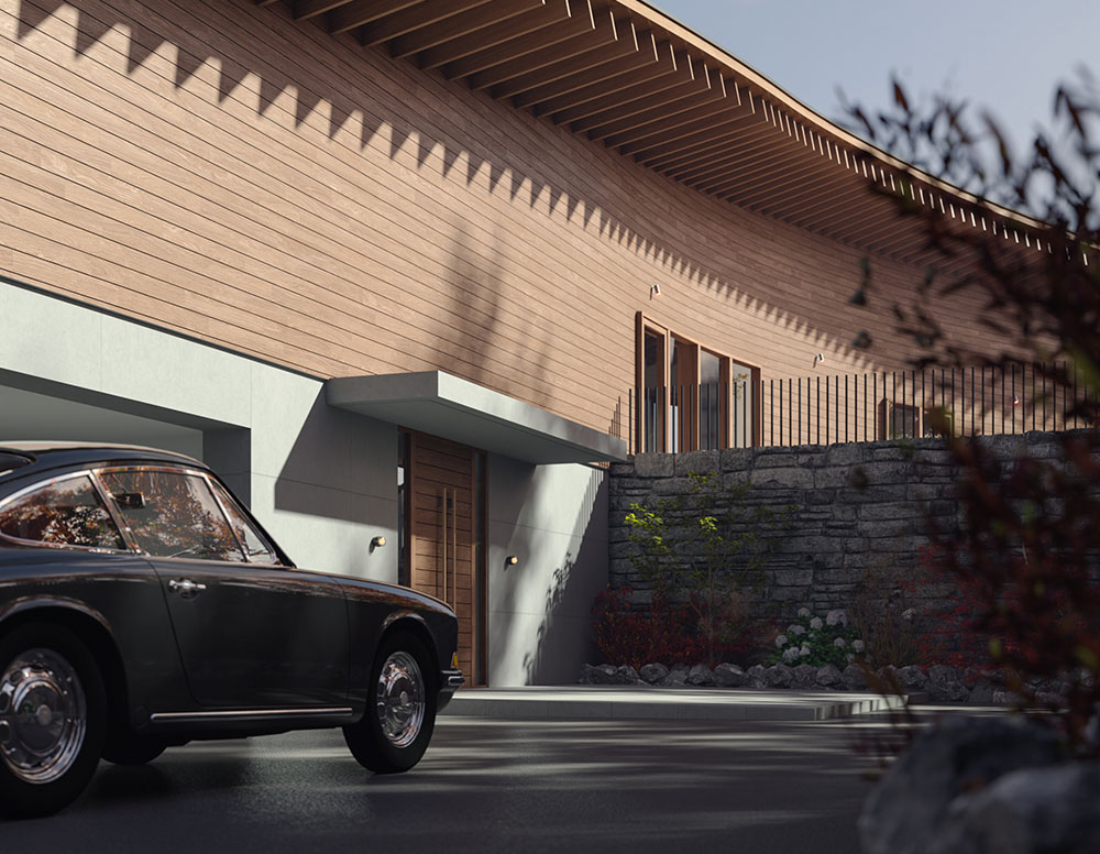この別荘だけにつながる坂道をあがると、目の前に現れるのは息をのむ存在感です。